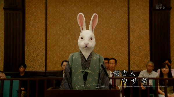 法廷に立つ被告人が、和服着たうさぎさんだよ。